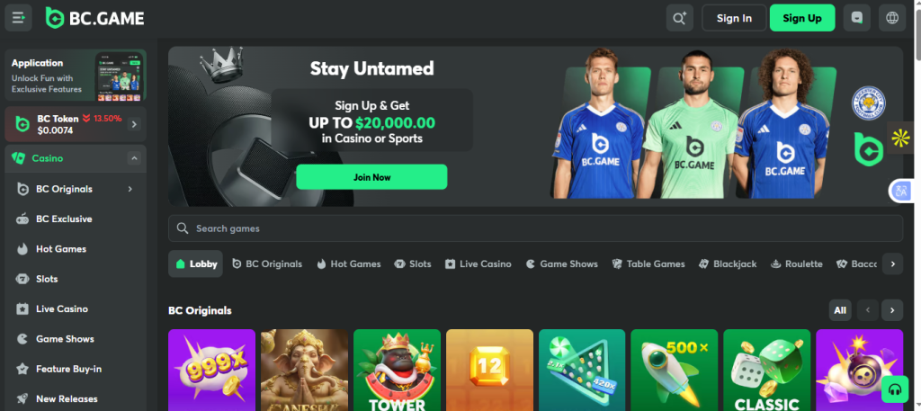 BC.Game is the most frequently cited alternative to Stake, and for good reason. It accepts over 150 cryptocurrencies, more than any other platform on this list, making it the natural home for players holding altcoins beyond the main assets. The game library exceeds 10,000 titles, and the platform hosts 70+ in-house BC Originals, including Crash, Plinko, Limbo, Dice, and more experimental titles all provably fair and independently verifiable via cryptographic hash.